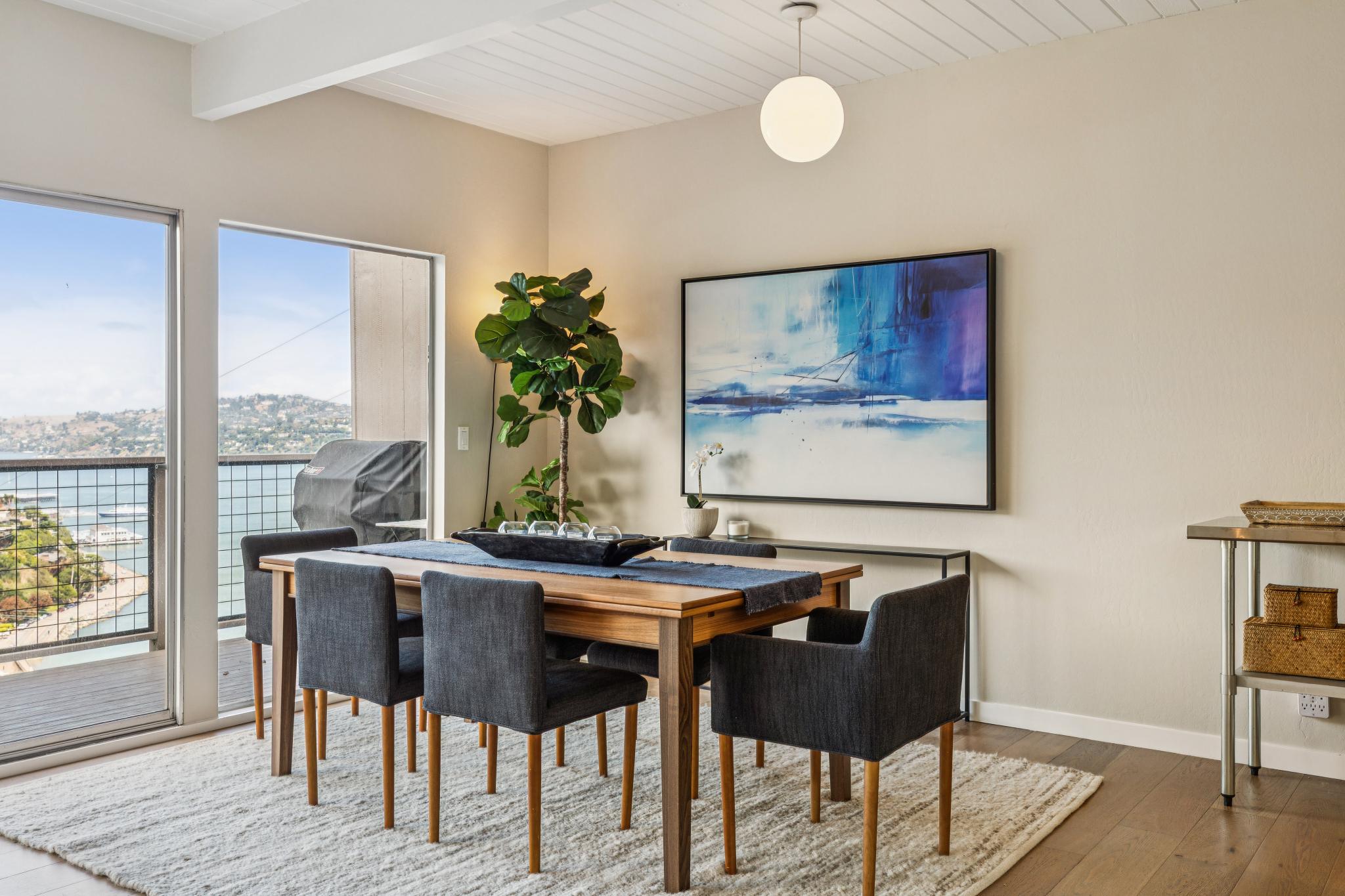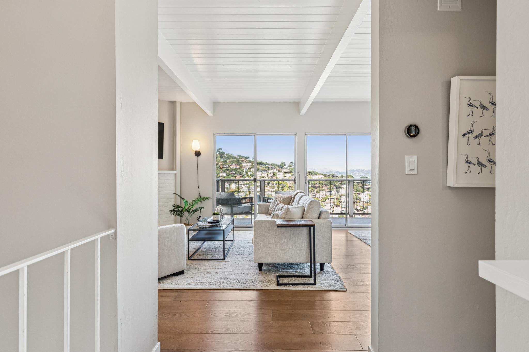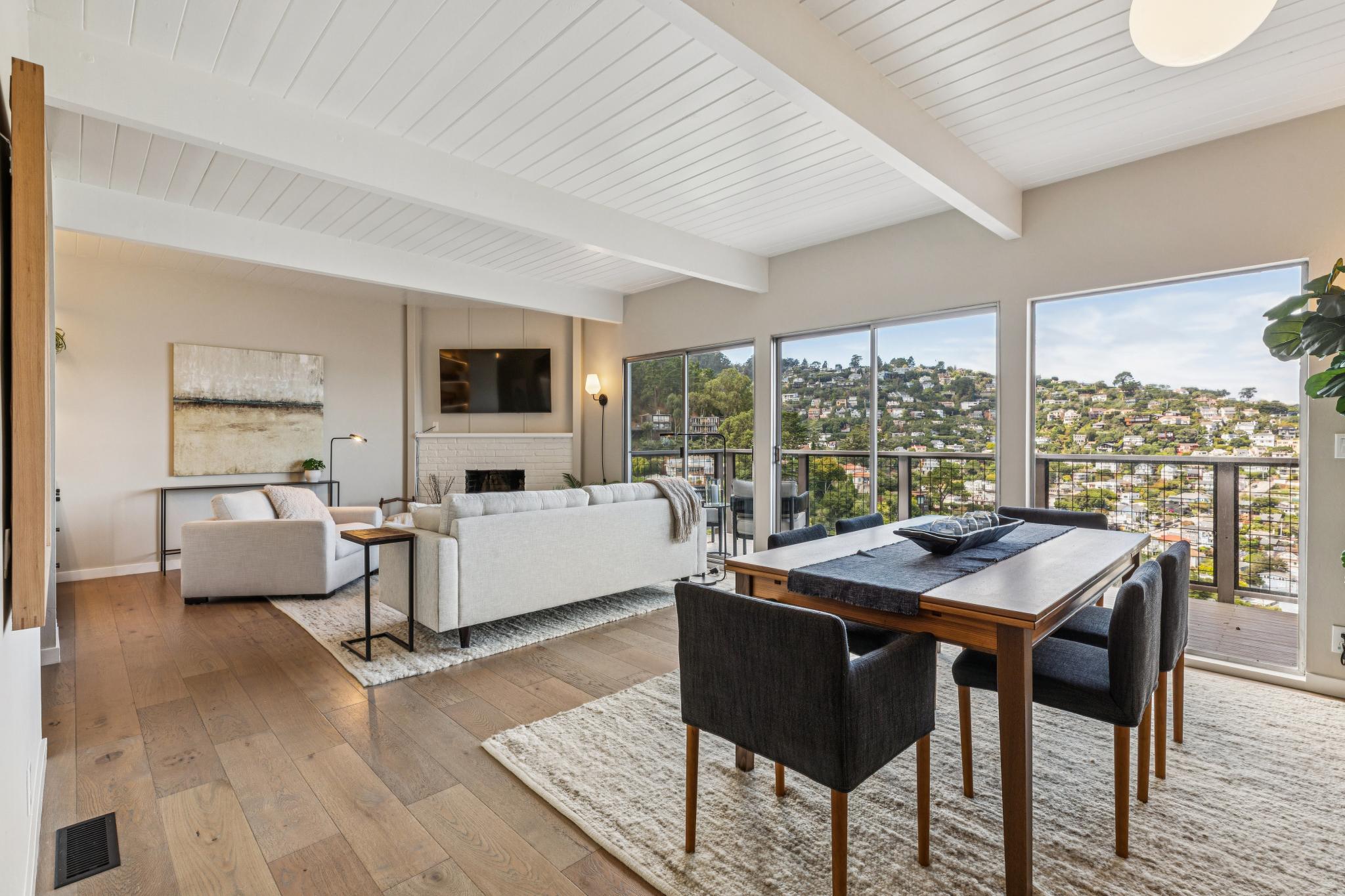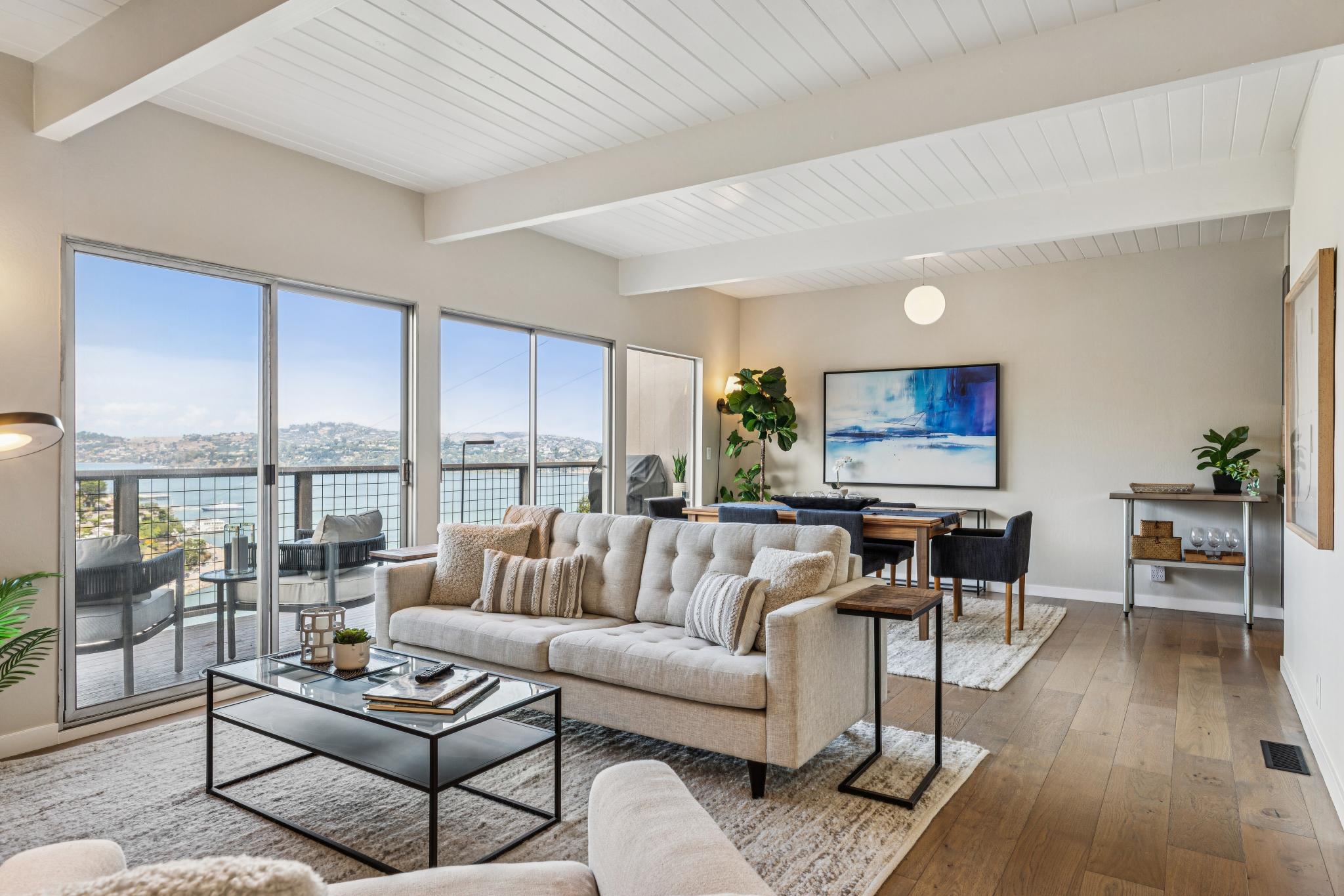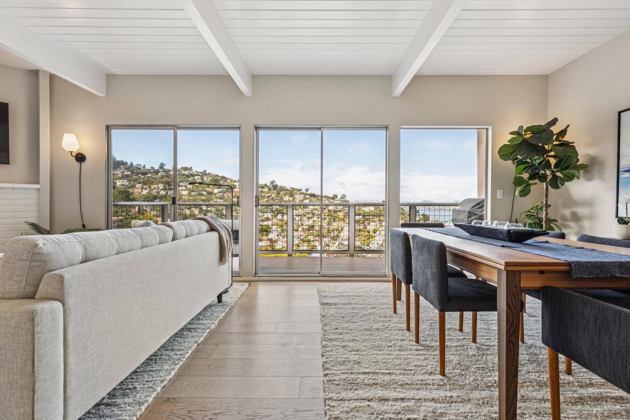 With views of the waterfront, Raccoon Straits, and the Amalfi-like coast that is the amazing seaside town of Sausalito – this recently and elegantly updated mid-century perch personifies California coastal living. Awash in natural light & astounding vistas, this comfortable retreat is just up from restaurants and shopping, the Golden Gate Bridge, and mere minutes to San Francisco.