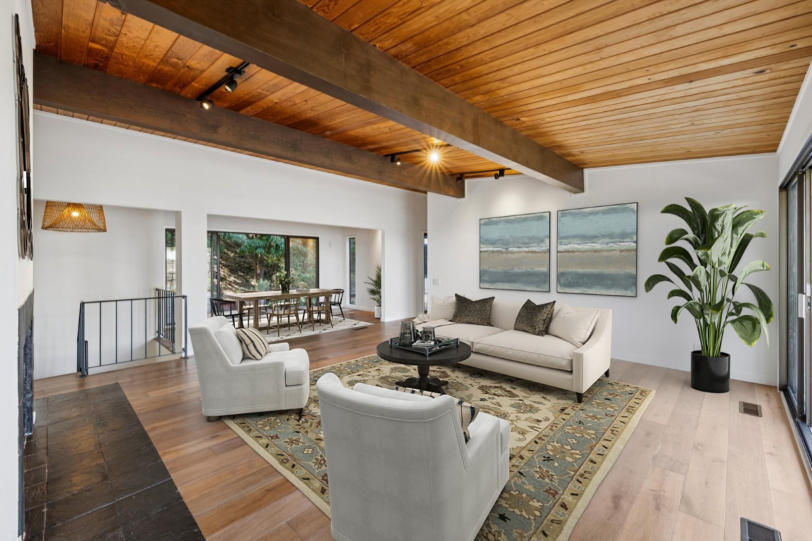 - Built in 1968 with vintage mid-century charm including vaulted open beam ceilings